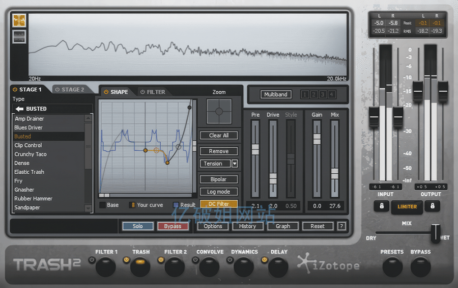 此外,iZotope Trash还提供了一系列的音效模块,可以进一步扩展和完善失真效果。其中包括滤波器、压缩器、失真模拟器、EQ和延迟效果器等。这些模块可以单独使用,也可以按照自己的需求进行组合和调整,以获得更具个性化的音频失真效果。