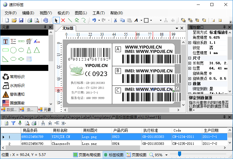 丰富的标签元素支持:文本、文本链(文本的组合)、自动文本(通过规则定义使每一张标签按一定的规则变化)、直线、折线、框、圆、多边形、图片等元素。